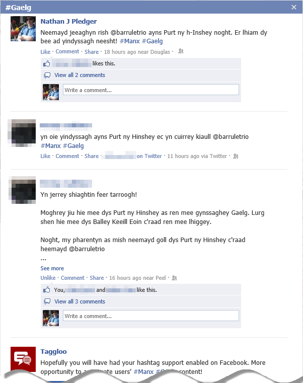 Hopefully you’ll have already read my previous post about using social media to reflect the increasingly vibrant nature of the Manx Gaelic language and cultural identity. Shortly after which, Facebook joined both Twitter and Instagram by adding support for hashtags too.