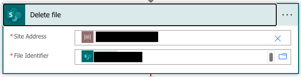 We pass in the GUID we got from the Get the file metadata Action as the File identifier to delete the original file.