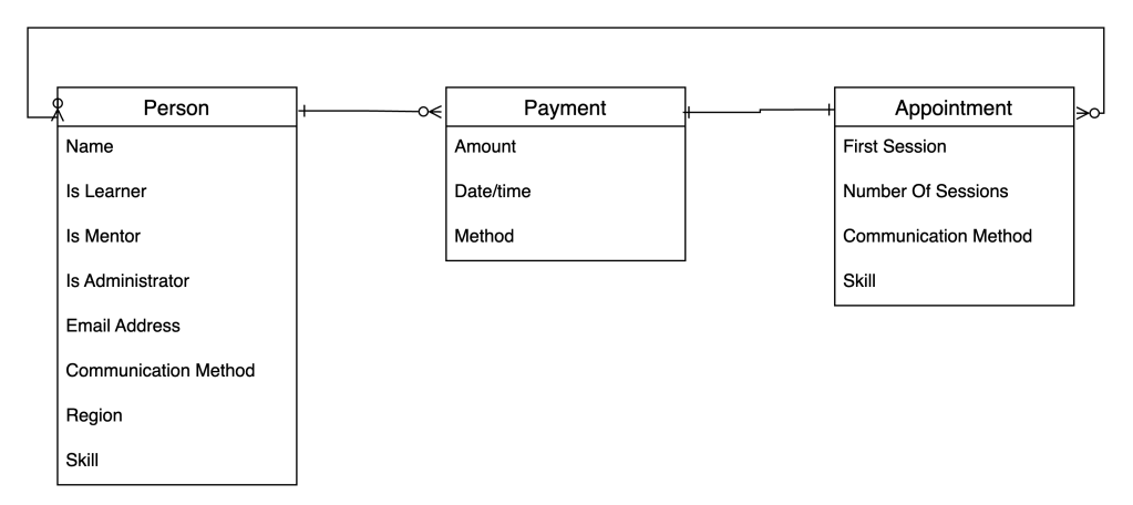 - The Administrator oversees the matching of a Learner with a Mentor, which activates the Appointments.