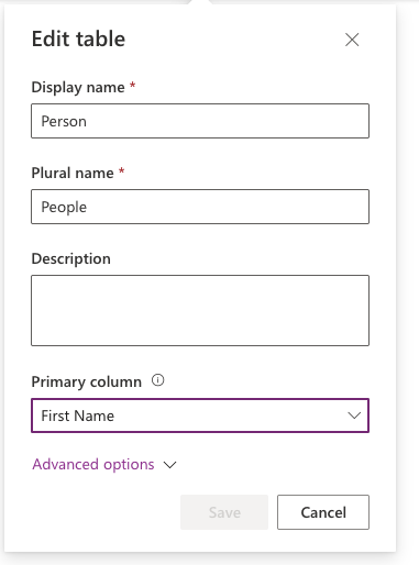 It also shows how we can configure plurals in Dataverse so that the collective noun for Person becomes People. When creating the entity, be sure to make sure that the correct column will be the Primary Name column.