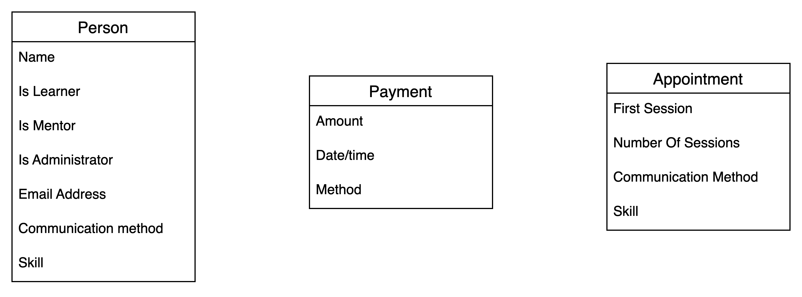 - A Person can be a Learner, Mentor or Administrator or any combination.
