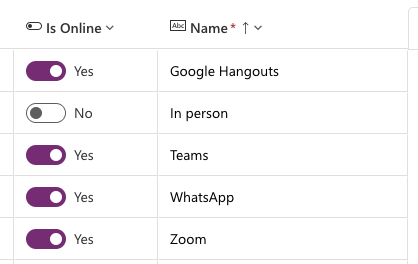 Communication method and Skill will be simple. A Communication method could be “Teams” or “Google Hangouts” and Skill can be a range of discrete skills, from “beginner” to “experienced”. These will map well to choices or lookup lists in Power Platform.