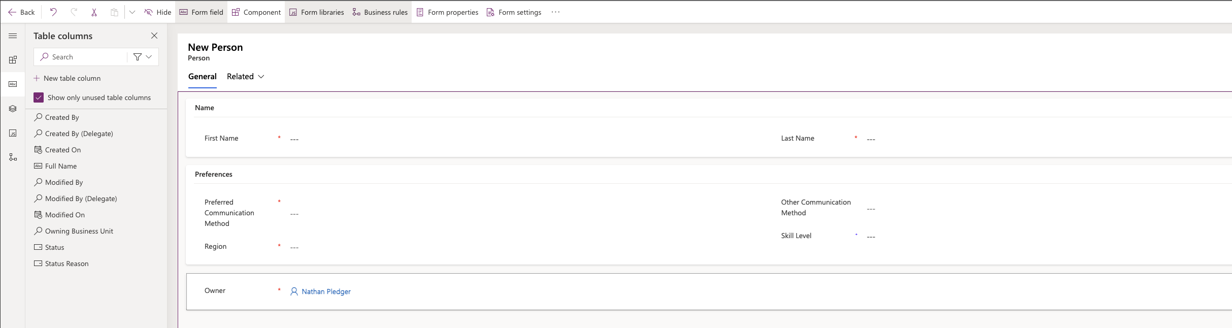 Create a new Person by clicking New and you’ll get the basic form: