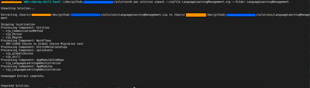 pac solution unpack --zipfile LanguageLearningManagement.zip --folder LanguageLearningManagement