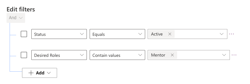 It is possible to create a couple of views, one for Mentors and one for Apprentices. Both can be easily created.