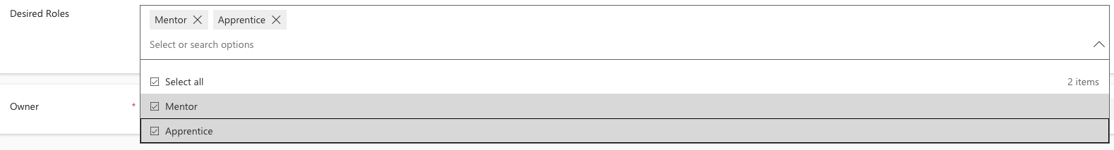 It is possible to create a couple of views, one for Mentors and one for Apprentices. Both can be easily created.